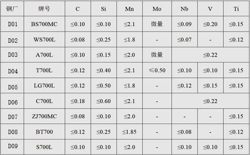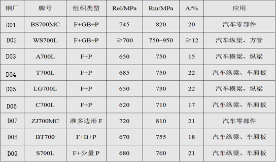 同时,国内宝武 、首钢、河钢、鞍钢、涟钢、珠钢、包钢等各大钢企均已具备700MPa-750MPa级高强钢供货能力,国内700MPa-750MPa热轧高强钢均采用低碳+复合添加Nb、V、Ti、Mo等元素,Ti添加量较高(0.1%左右).组织以F+P、F+P+GB和单相F为主。