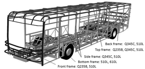 新能源客车骨架主要采用≤610MPa级低合金、普碳钢产品,其重量约占客车总质量的1/3左右,而采用高强钢制作方矩形管是客车车身的发展趋势。 近年来,某客车厂采用超高强度钢制造的我国首辆轻量化公交车,此车型比国内同长度、同配置车身骨架减重 13%,载客能力提高 20%,且节省油耗 5%以上.