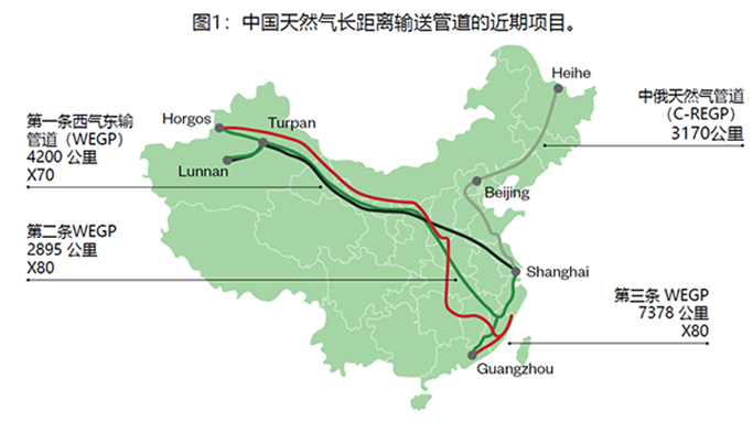 下图1介绍了中国近期开发的重要长距离输管道项目,并且表1说明了各自的规范和运行参数。