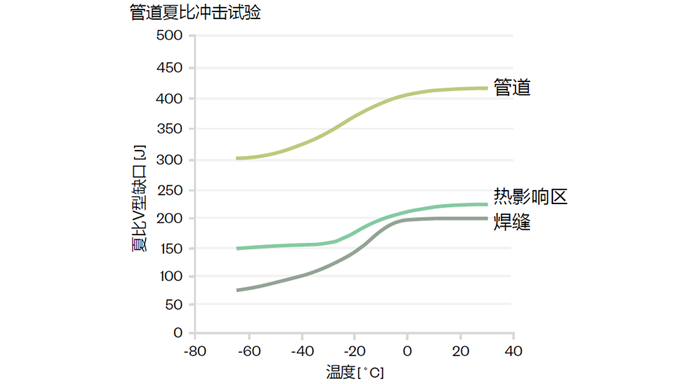 图2:中俄东部管道母材(管材)、热影响区(HAZ)和焊缝的夏比V试验韧性评价。
